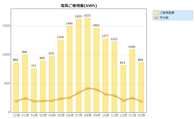2024年1月~12月の総消費電力量は14,401kwhで、2025年2月現在の実質的な